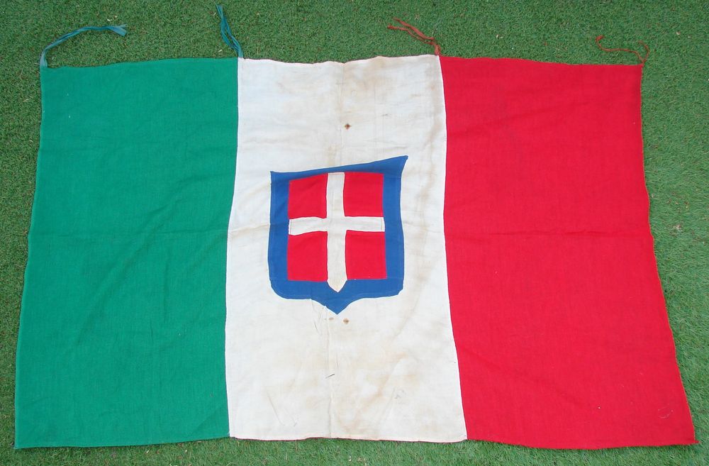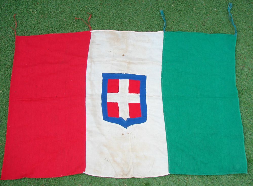Balcony flag of the Kingdom of Italy "1861-1946" in cotton with the Savoy cross machine-stitched. Four loops for attaching it to a balcony or flagpole.