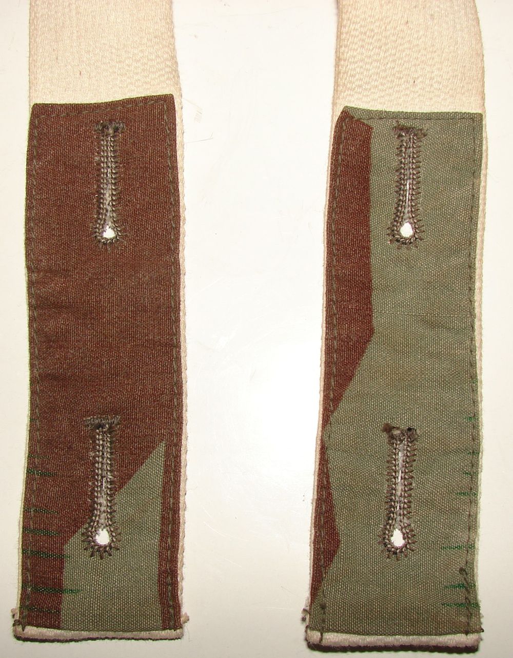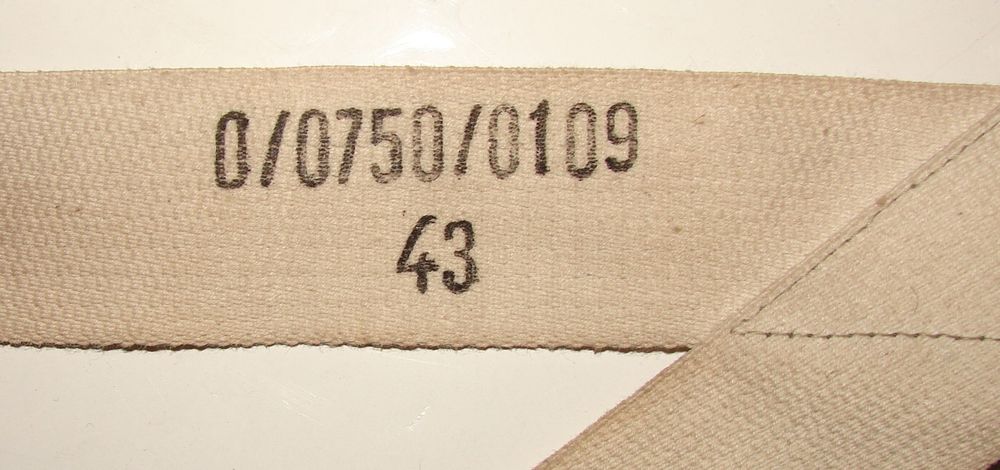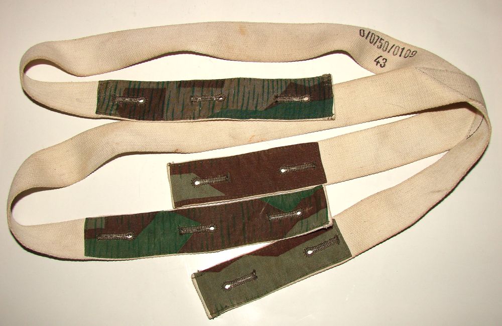 Bretelle renforcée aux boutonnières par des chutes de tissus camouflé Italien et de camouflage éclat Allemand, tamponné d'un RbNr: 0/0750/0109, "Paul Kübler & Co GMBH, Stuttgart, datée 43".