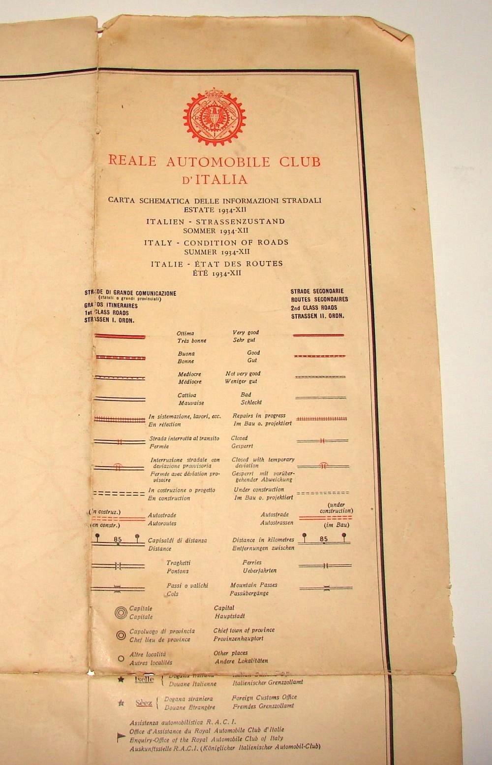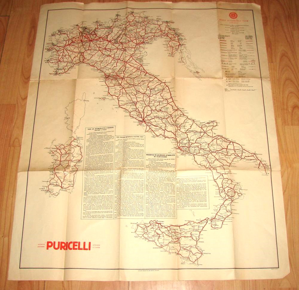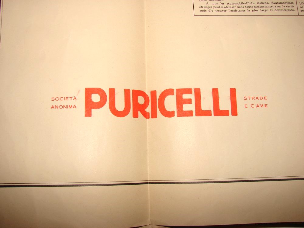 Carte Italienne datée de 1934, concernant l'état des routes. Editions Puricelli.