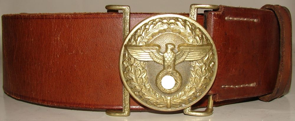 Ceinturon de Politische Leiter, tampon du fabricant illisible. Boucle marquée RZM M4/24 du fabricant "Friedrich Linden" à Lüdenscheid. .