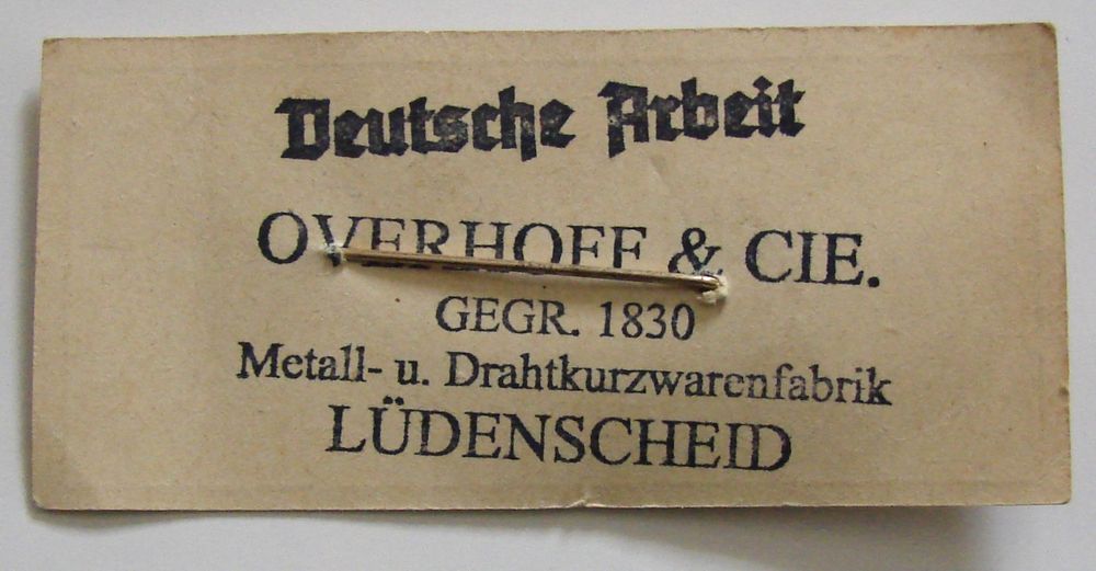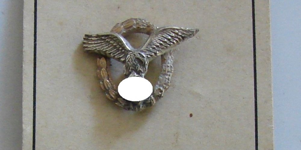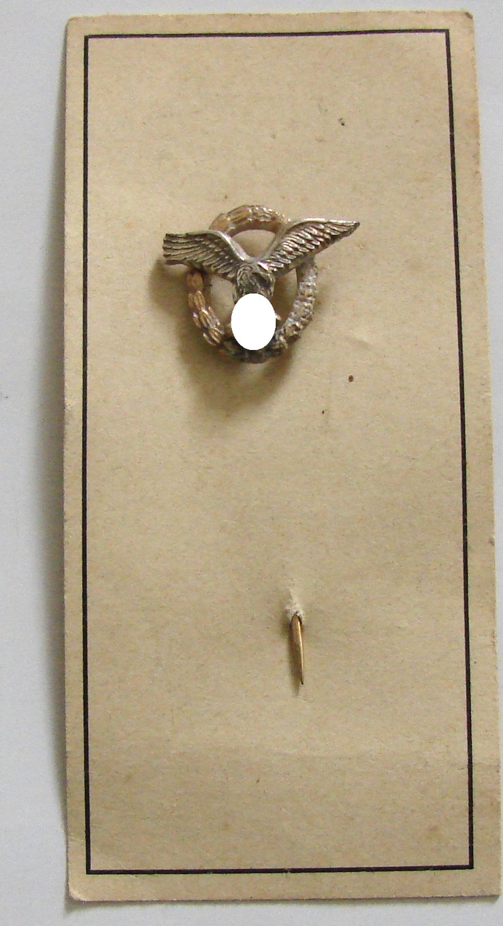 Insigne de pilote miniature pour revers de col sur son carton d'origine fabriqué par Overhoff.