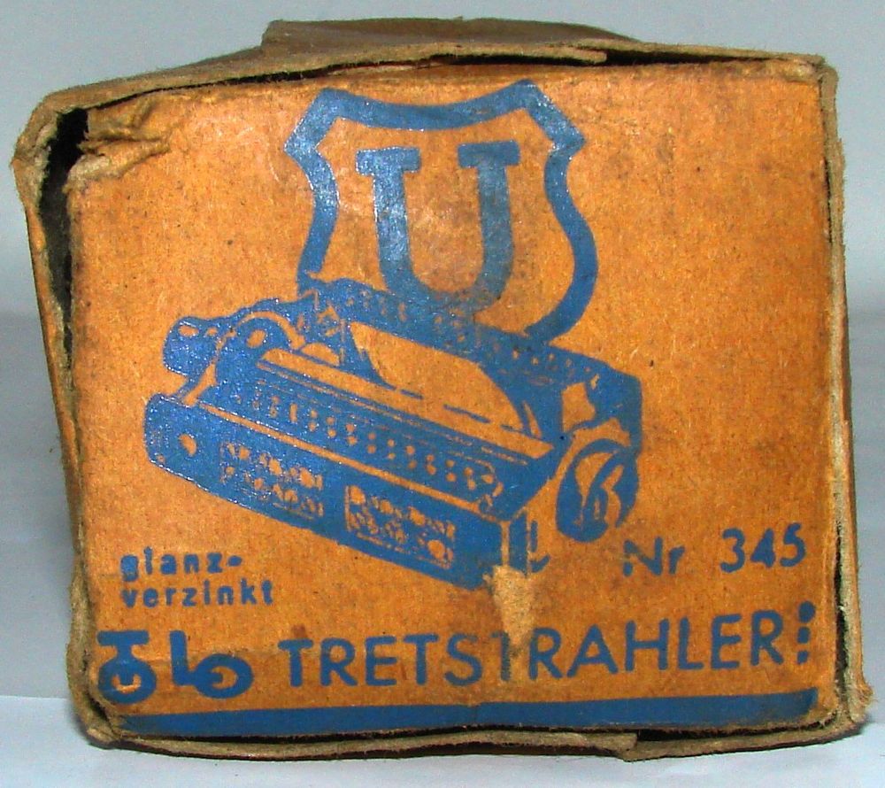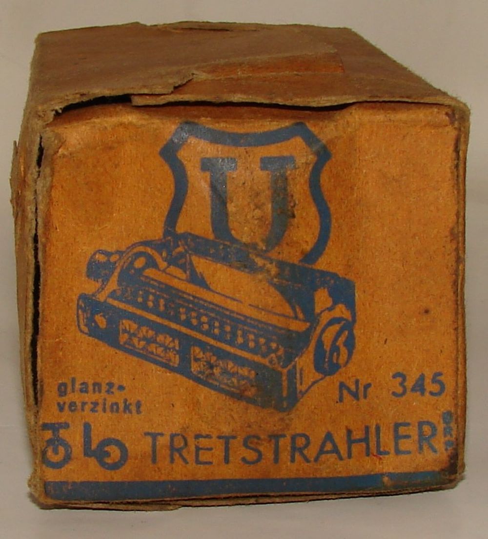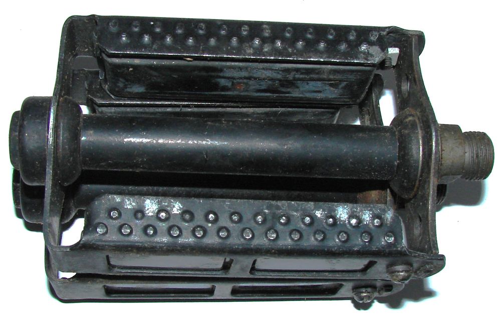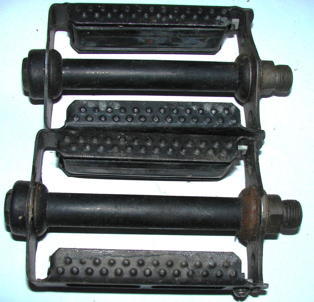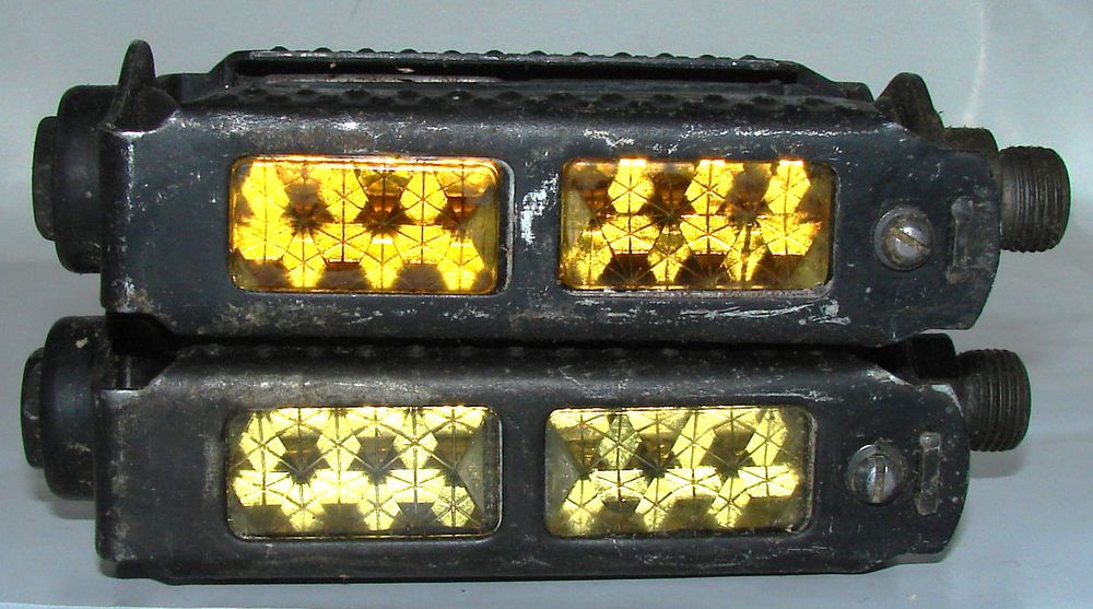 Jeux de pédales de marque Union avec réflecteurs luminescents inventé par Anton Loibl ancien conducteur de Hitler. Marquages "DRP PT R 345, Union Fröndenberg" Boite d'origine marquée " TRETSTRAHLER, littéralement Réflecteur de pied"
