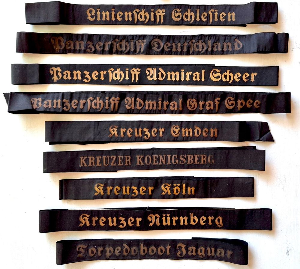 Set of 9 Kriegsmarine ribbons from stopovers in Portugal during the Spanish Civil War.