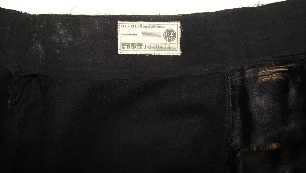 Navy blue wool trousers from the HJ, black cotton lining, black silk pockets, signs of wear. RZM label.