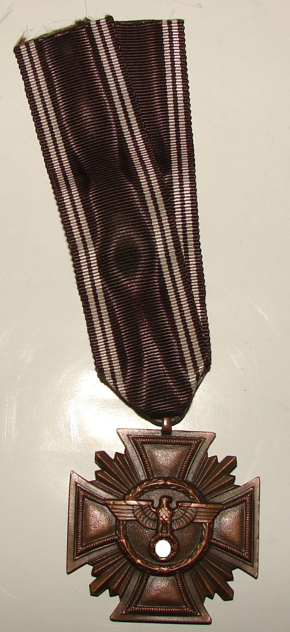 NSDAP bronze medal for 10 years in the party, made by Gebruder Jäger in Gablonz an der Neisse (Jablonec nad Nisou in Czechia), code 14.