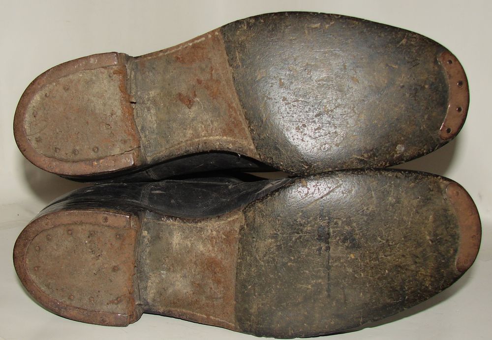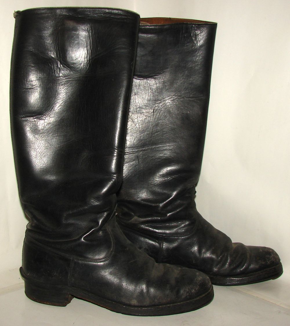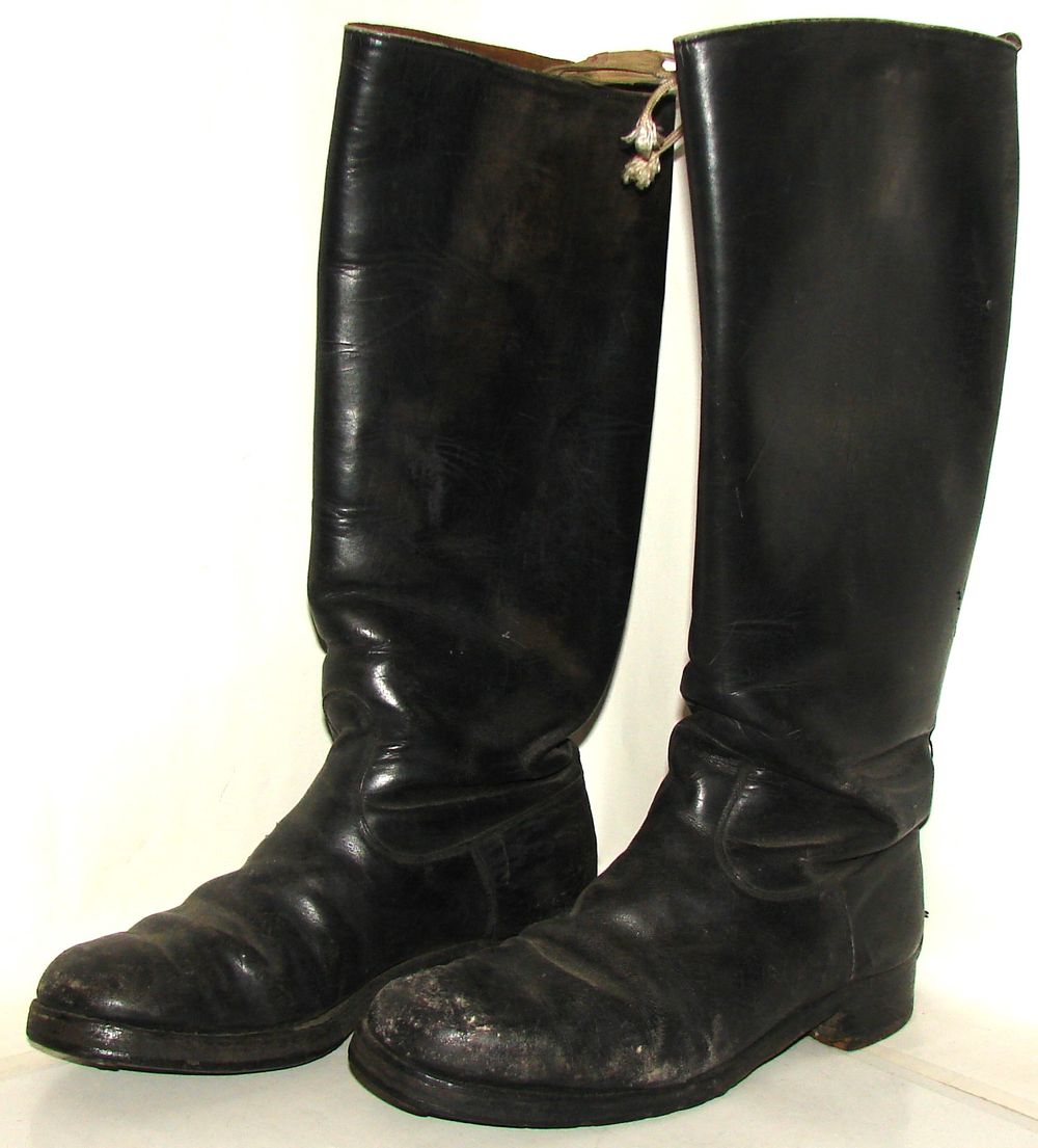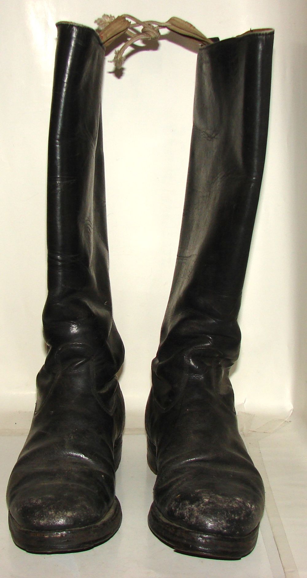 Pair of black leather riding boots for a helferin, glazed and iron-shod. Size approximately 38. Owner's name: "Pöhn"