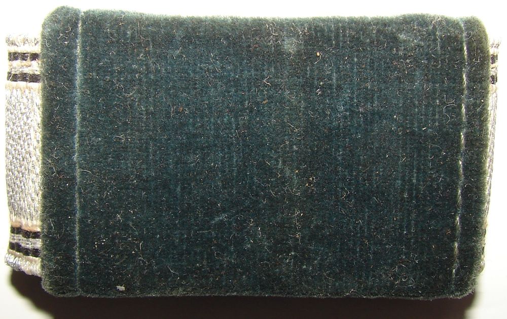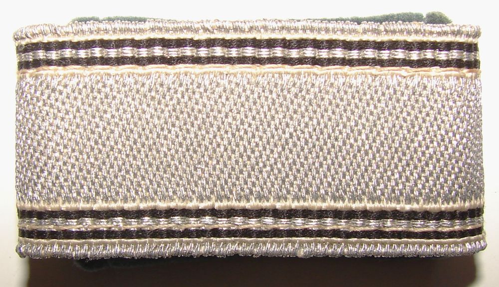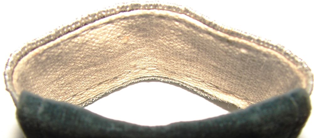 Parade belt loop for a Waffen or police officer, made of silver bullion thread lined with a piece of green velvet. Lined with white cotton canvas.