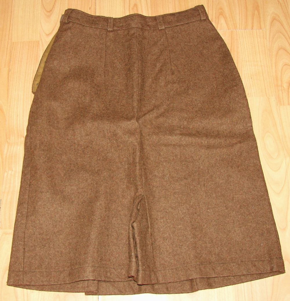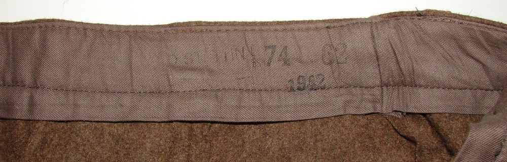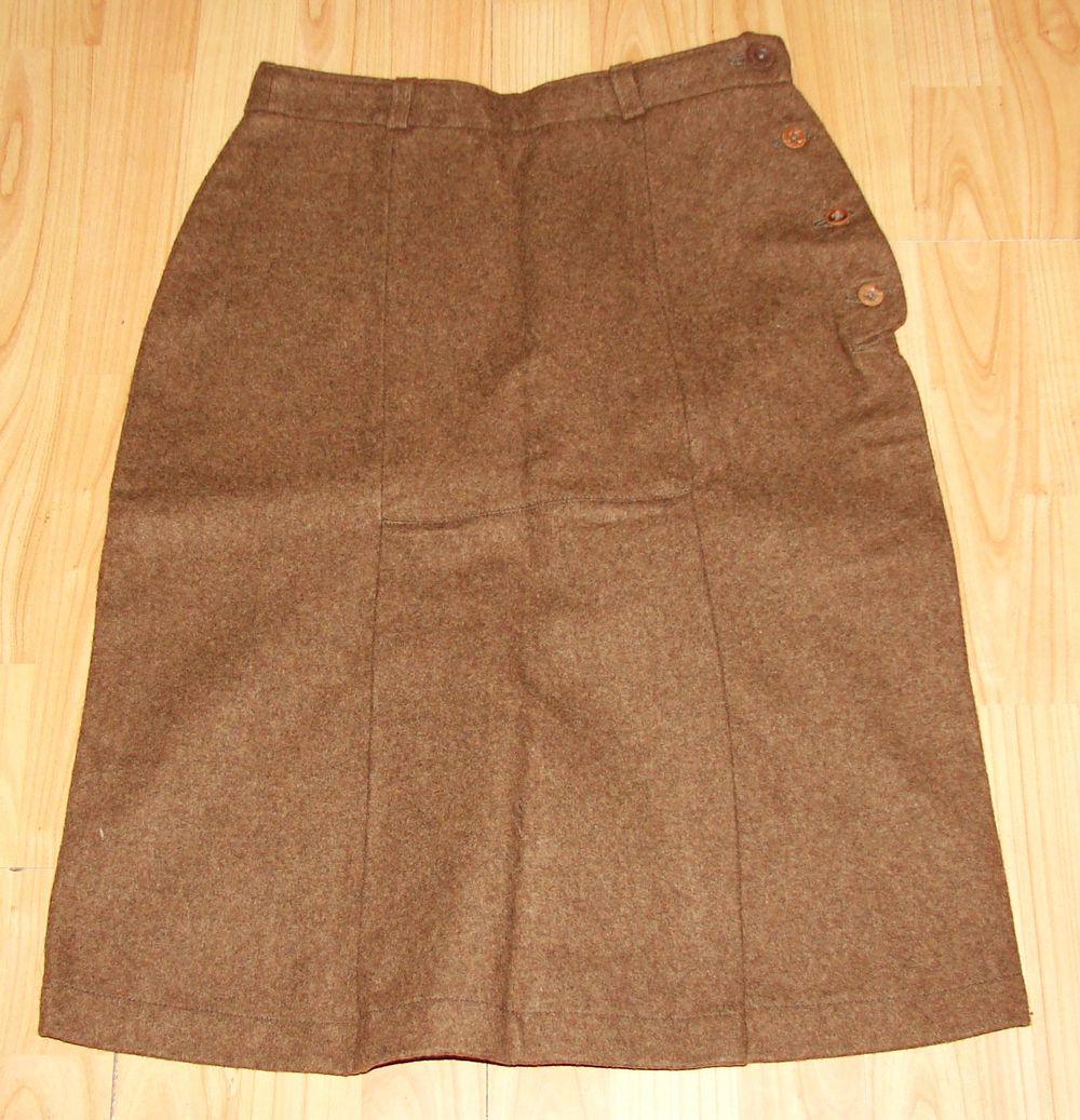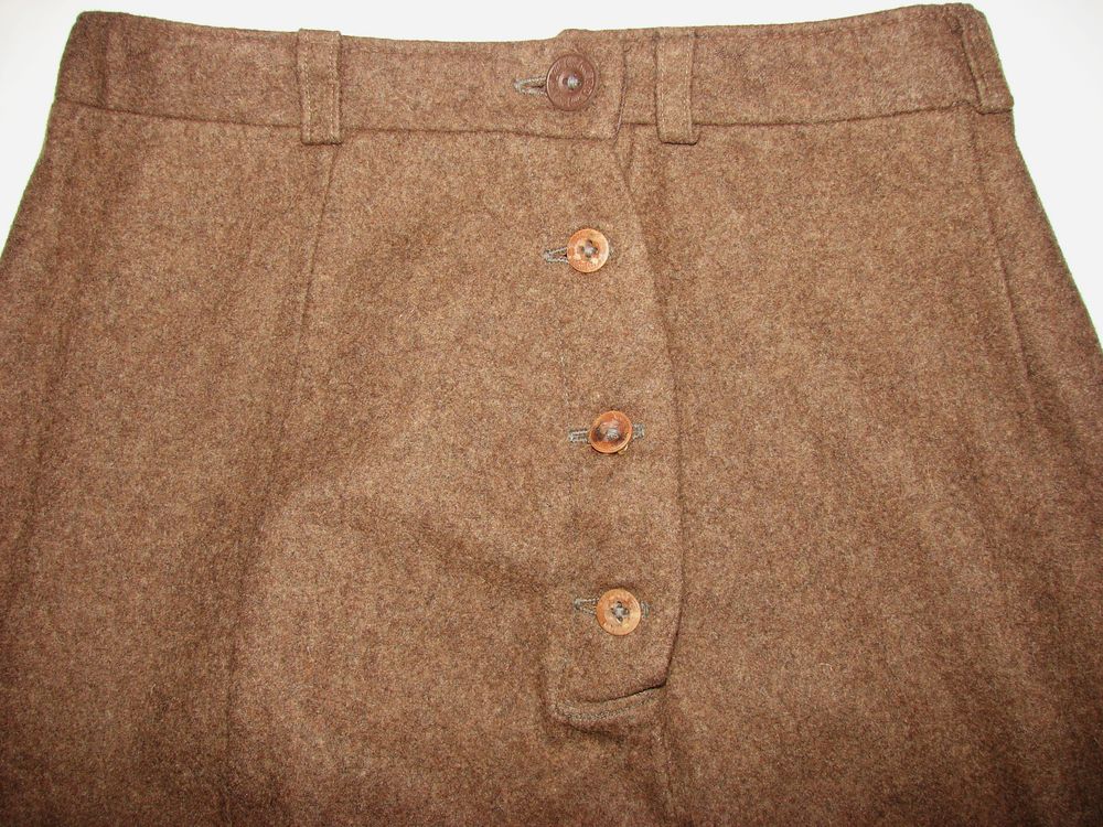 The skirt is made of brown wool cloth with a brown cotton lining at the waist. Size marking "74 62", the city of Stettin, and the date 1942.
